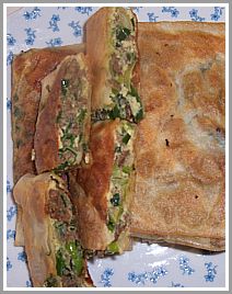 - Add into the big bowl: the chopped leeks, the eggs and the grounded meat. Mix it together until well. Add some salt if needed.